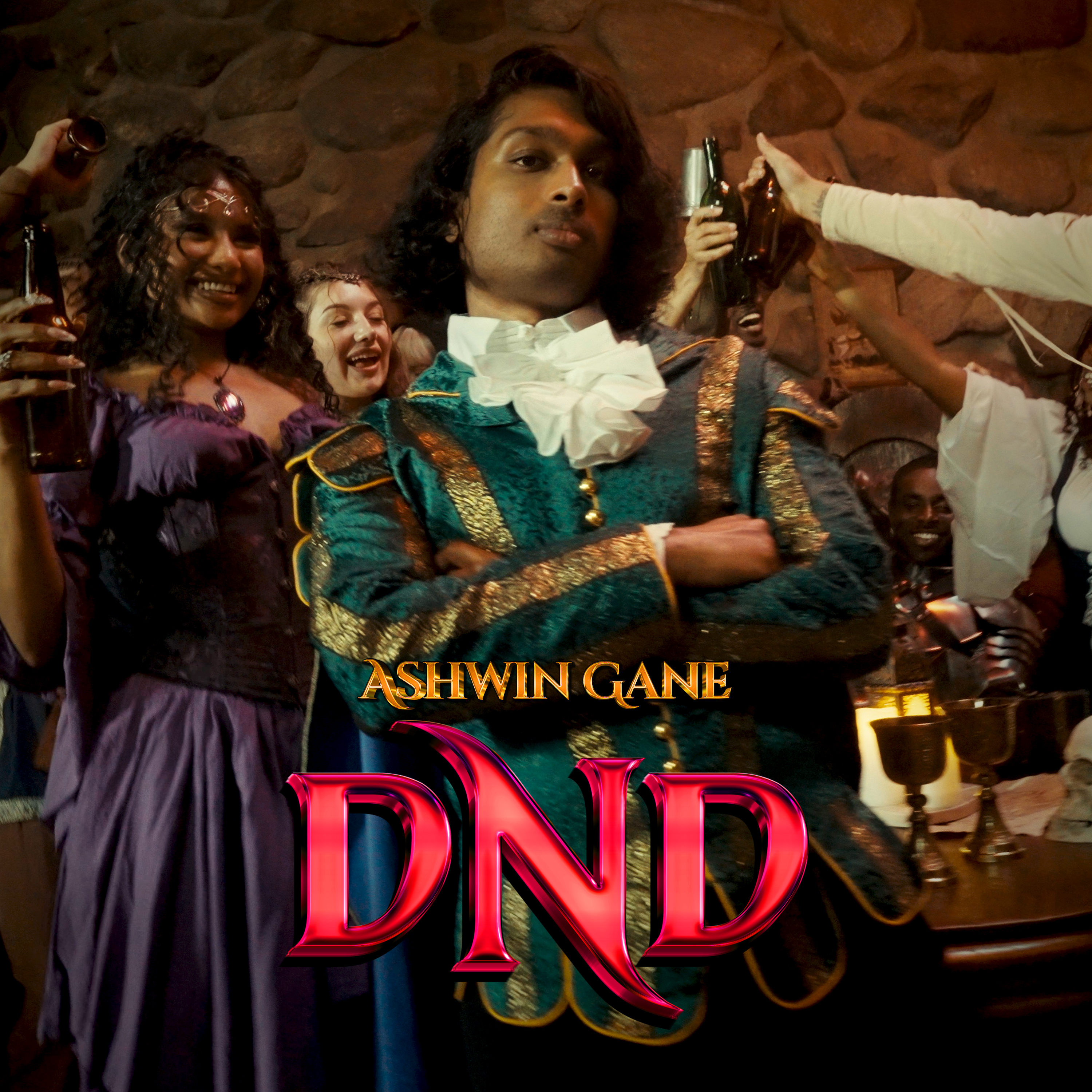 Cover art for Ashwin Gane’s single “DND (Do Not Disturb),” set in a fantasy‑styled tavern party that matches the song’s late‑night, exclusive energy.
