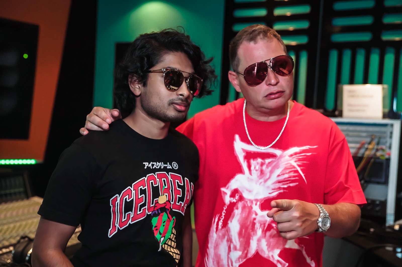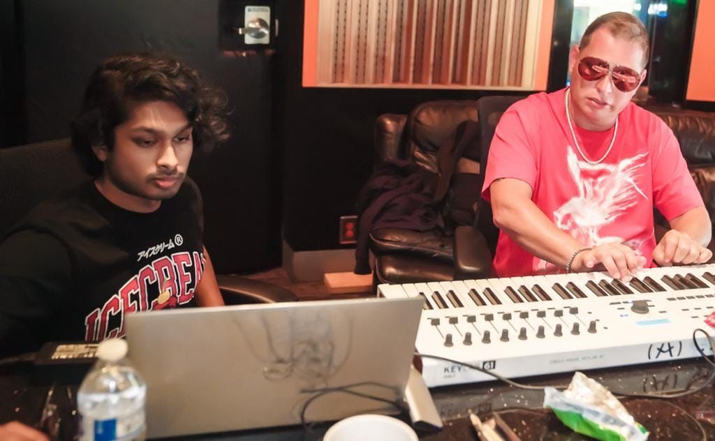 Ashwin Gane in the studio with legendary producer Scott Storch during the creation of “DND (Do Not Disturb).”